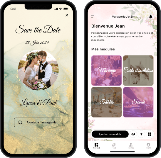 Les invités reçoivent une invitation par SMS avec un code unique pour l'événement. Grâce à ce code, ils peuvent trouver leur table, accéder à toutes les informations en temps réel, obtenir des indications de trajet avec Waze, synchroniser la date de l'événement avec leur agenda, et bien sûr, répondre simplement à l'invitation en quelques clics. Une expérience fluide et pratique pour profiter pleinement de votre événement !